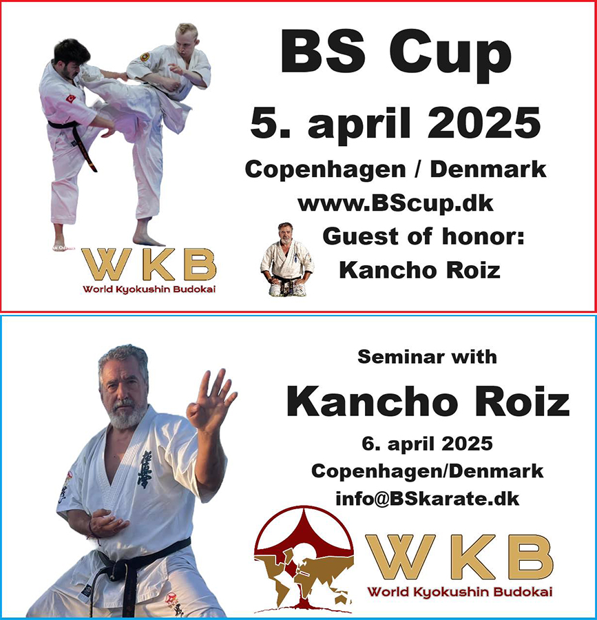 On April 5, 2025 in Copenhagen, Denmark will be held the International Kyokushin Tournament “BS Cup 2025” (WKB). Information on weight and age categories will be added soon. After the tournament, on April 6, 2025, will be held a seminar with a President World Kyokushin Budokai (WKB) – Kancho Pedro Roiz.