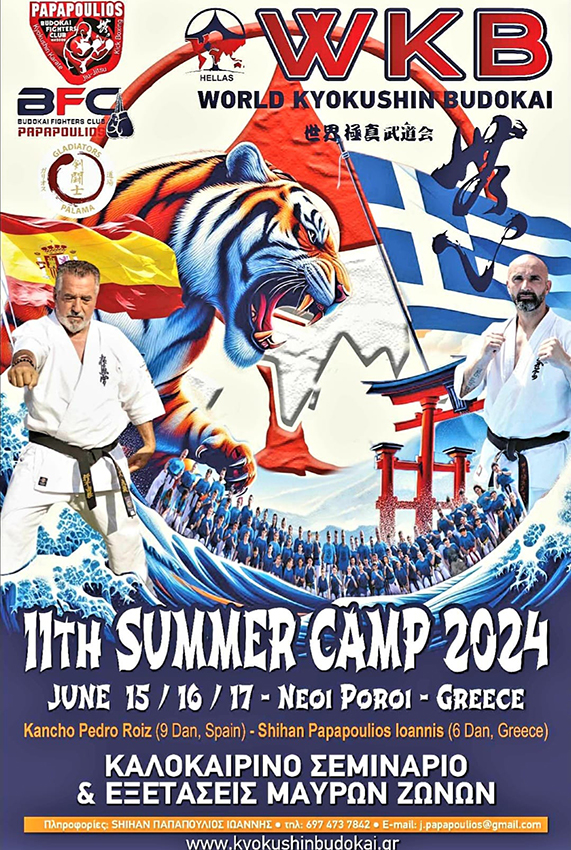 June 15-17, 2024 in Neoi Poroi will be held the WKB Greece Summer Camp 2024. Special guest: Kancho Pedro Roiz (9 Dan, Spain).